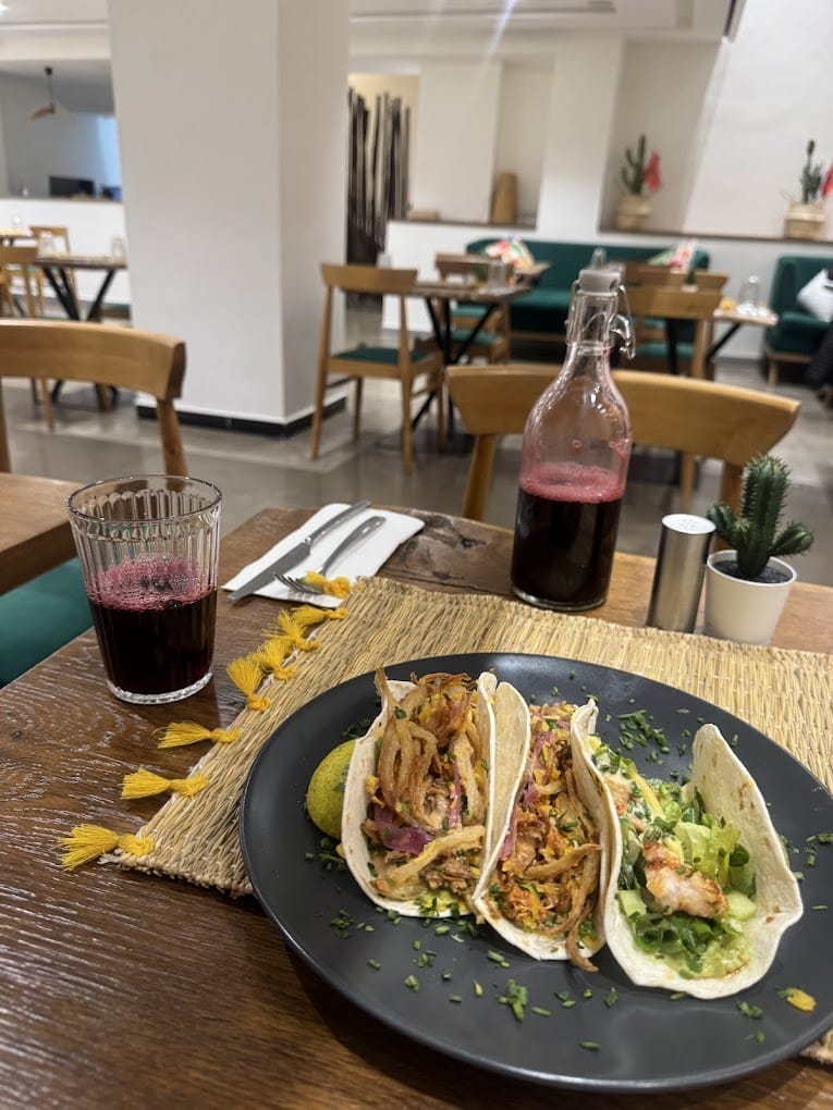 Pour accompagner ce festin, nous avons opté pour l’authenticité liquide : l’Agua de Jamaica. Si vous êtes marocain, cette boisson vous évoquera peut-être le bissap, mais la version mexicaine proposée par Guacaté possède sa propre identité. C’est une infusion de fleurs d’hibiscus, d’un rouge rubis profond et envoûtant.