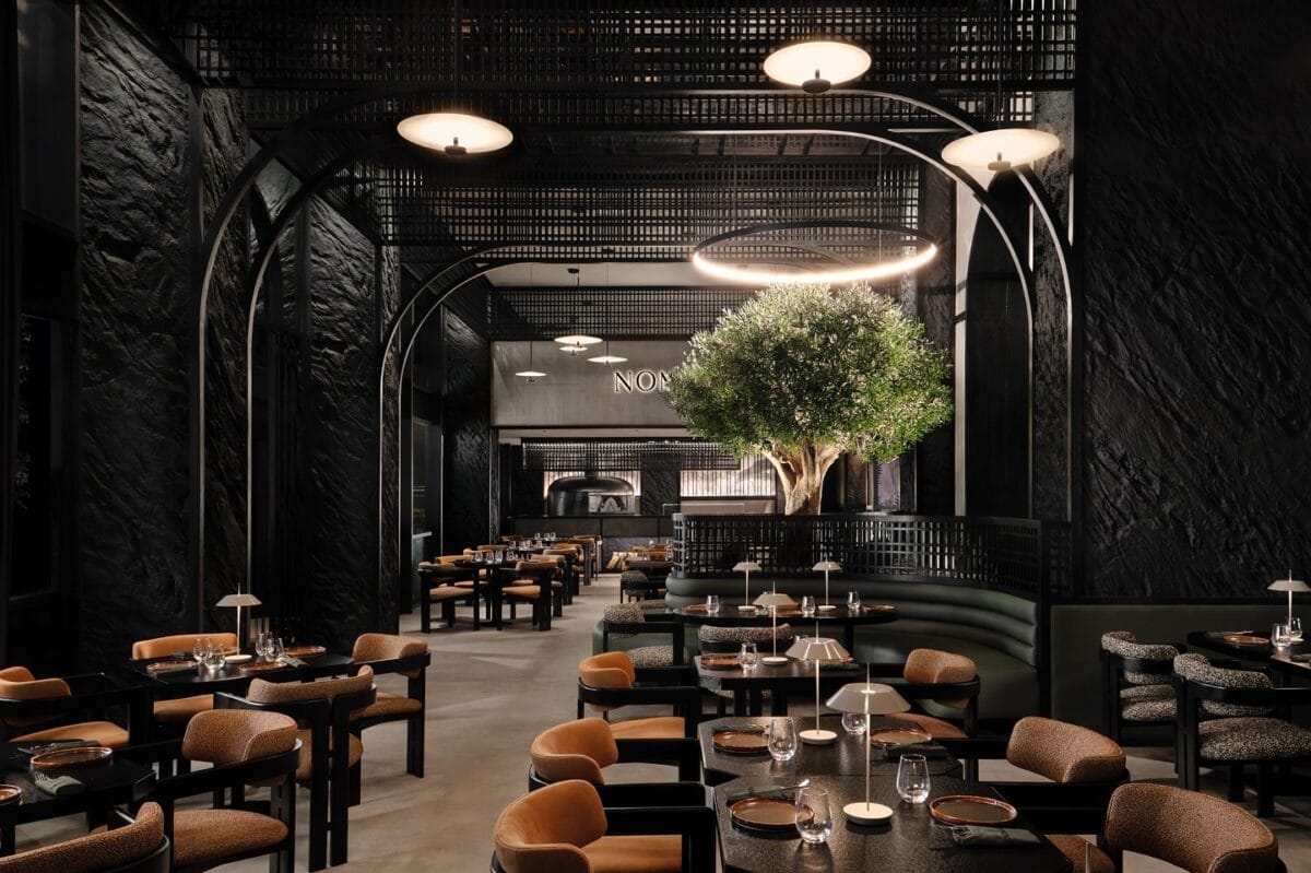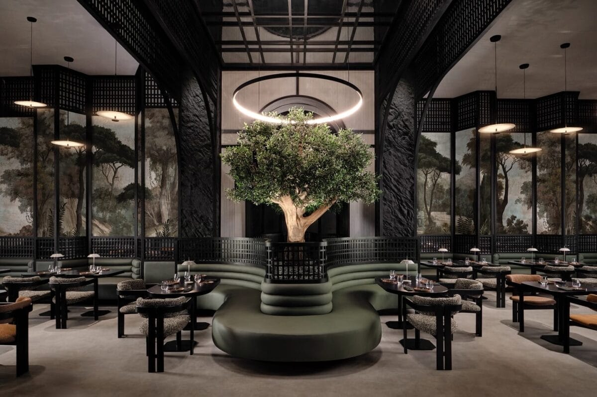 Le cadre de Nomaï se distingue par son décor moderne et intemporel, où des lignes épurées se combinent à des éléments organiques. La lumière joue un rôle essentiel dans cette mise en scène, accentuant les textures variées et les objets décoratifs qui rendent l’endroit encore plus séduisant. Au centre du restaurant trône un olivier majestueux, symbole de sagesse et de convivialité, qui renforce l’idée d’un lieu propice à la rencontre et à l’épanouissement des liens humains.