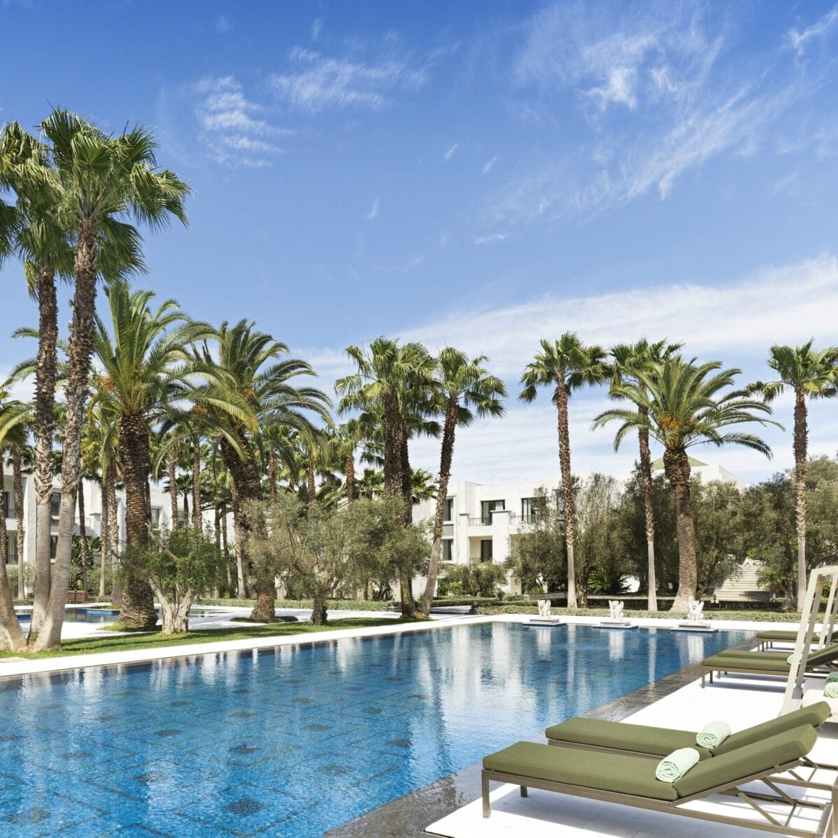 Les magnifiques jardins andalous, avec leurs fontaines et motifs géométriques, représentent un lieu de détente incontournable. La piscine monumentale, entourée de chaises longues et de cabanas ombragées, constitue un espace parfait pour se détendre au soleil, loin du tumulte quotidien.