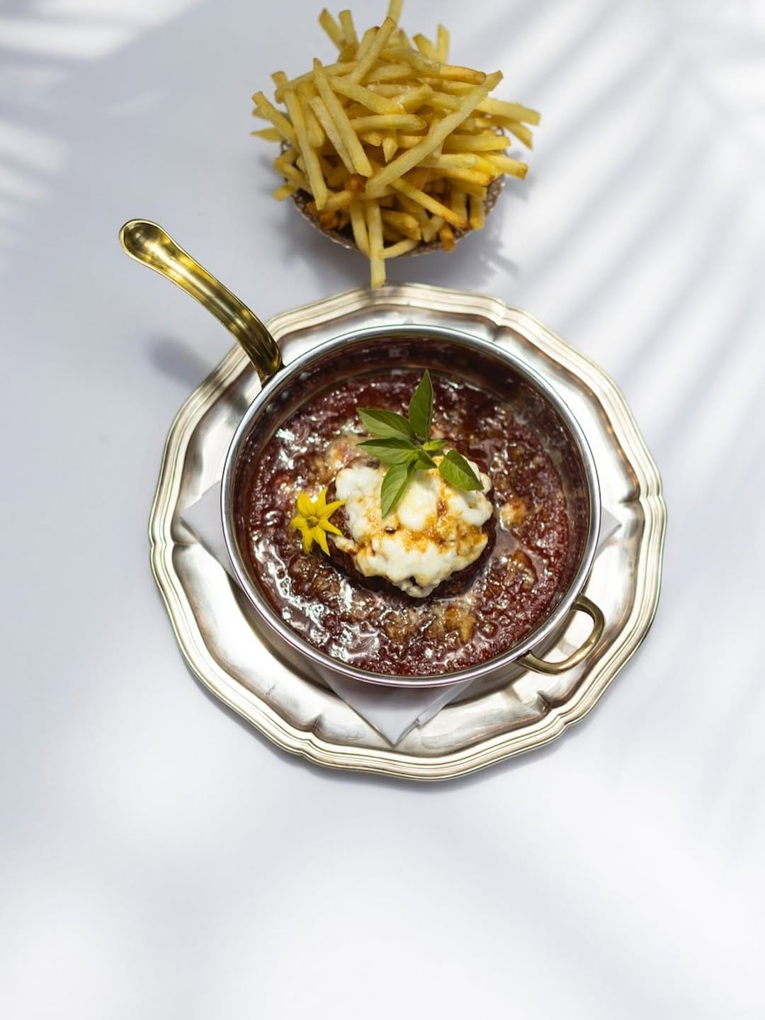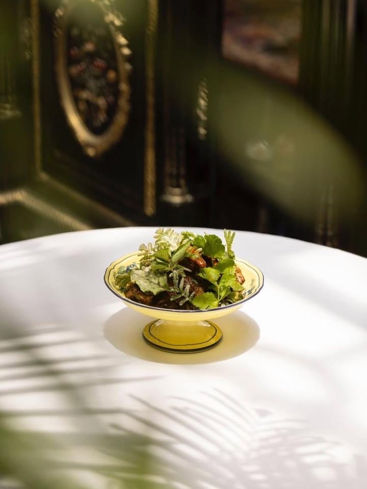 Dans l’assiette, le chef s’inspire des codes de la Belle Époque française pour réinterpréter les trésors du terroir marocain. Chaque plat est une surprise, une émotion. Imaginez des crevettes de Oualidia sublimées, une salade de homard rehaussée d’un jus coraillé à l’estragon, ou encore un chateaubriand accompagné d’un condiment « tigre qui pleure ». Le respect du produit est au cœur de chaque création, que ce soit dans les brocolis cuits au feu de bois ou dans la délicate soupe de fruits rouges au champagne.